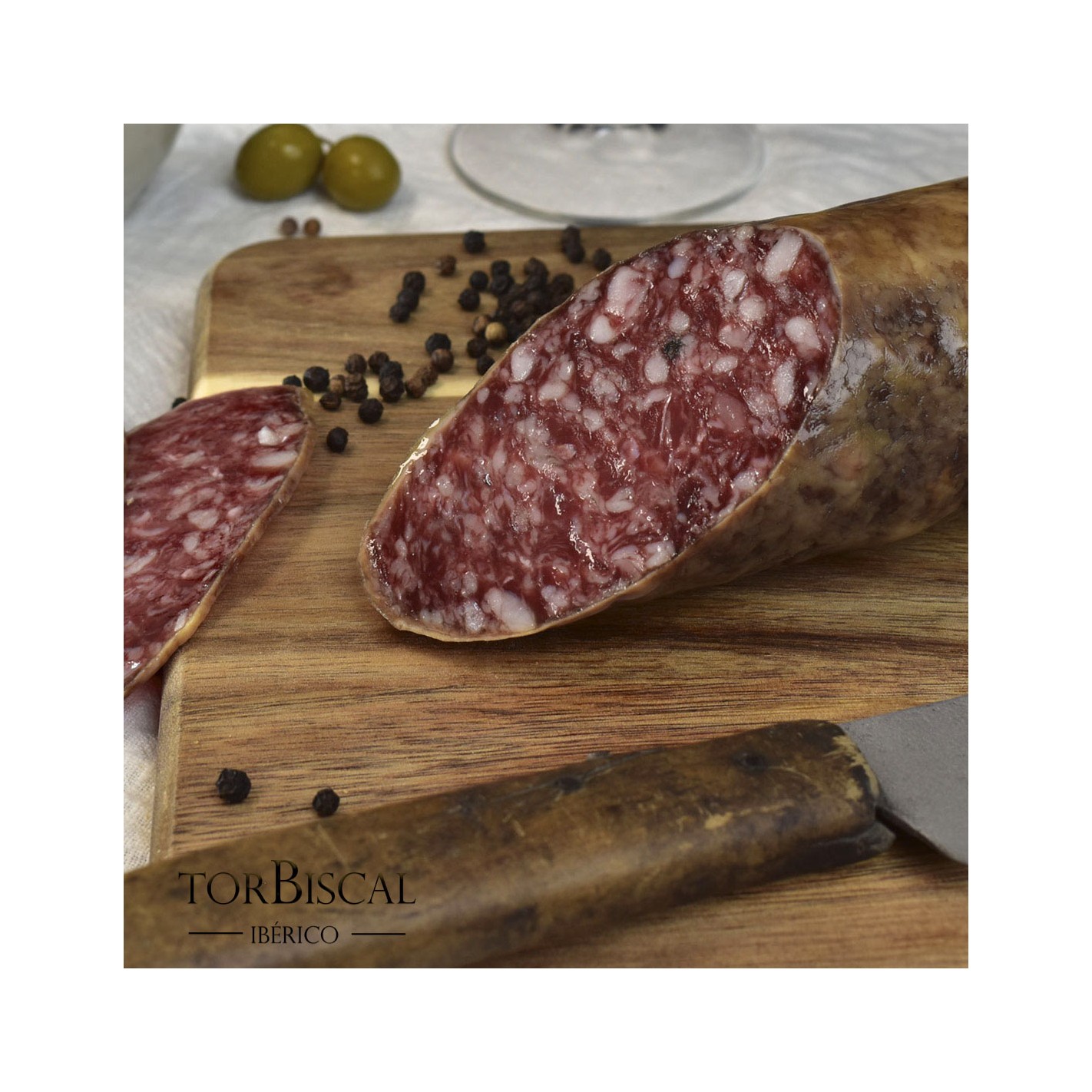 Disfrute plenamente de los sabores de la bellota con este estuche especial TORBISCAL SELECCIÓN compuesto por 10 sobres de jamón de bellota 100% ibérico cortado a cuchillo, listo para abrir y servir; media pieza de lomo de bellota ibérico 50% raza ibérica, media pieza de chorizo ibérico y media pieza de salchichón ibérico envasados al vacío para preservar mejor todo su aroma y sabor.